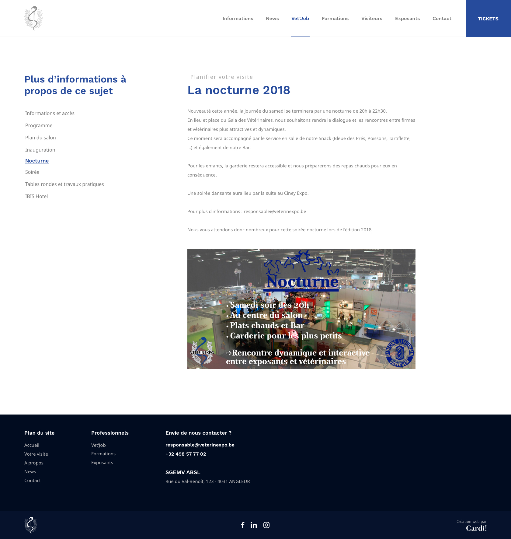 Vétérinexpo, c’est le salon vétérinaire de référence en Wallonie. Fondé en 1981, il n’a cessé d’évoluer et de s’établir dans divers endroits du pays, notamment à Bruxelles et à Ciney. Depuis toujours, il est organisé exclusivement par la S.G.E.M.V, une association d’étudiants de la Faculté de Médecine Vétérinaire de Liège. En septembre 2019, Rodrigue Piron m’a contacté pour remplacer l’ancien site du salon, qui ne répondait plus aux besoins tant pour les organisateurs, que pour les visiteurs. La volonté était donc de mettre en place une nouvelle méthode de communication et surtout de moderniser la plateforme.